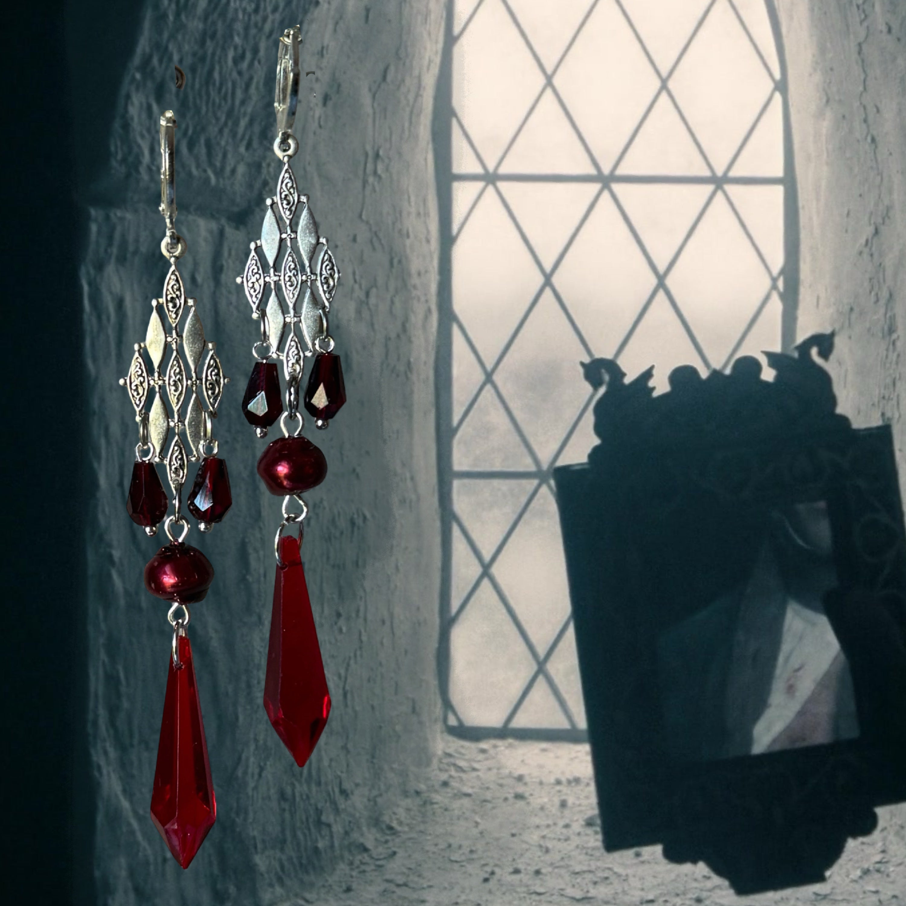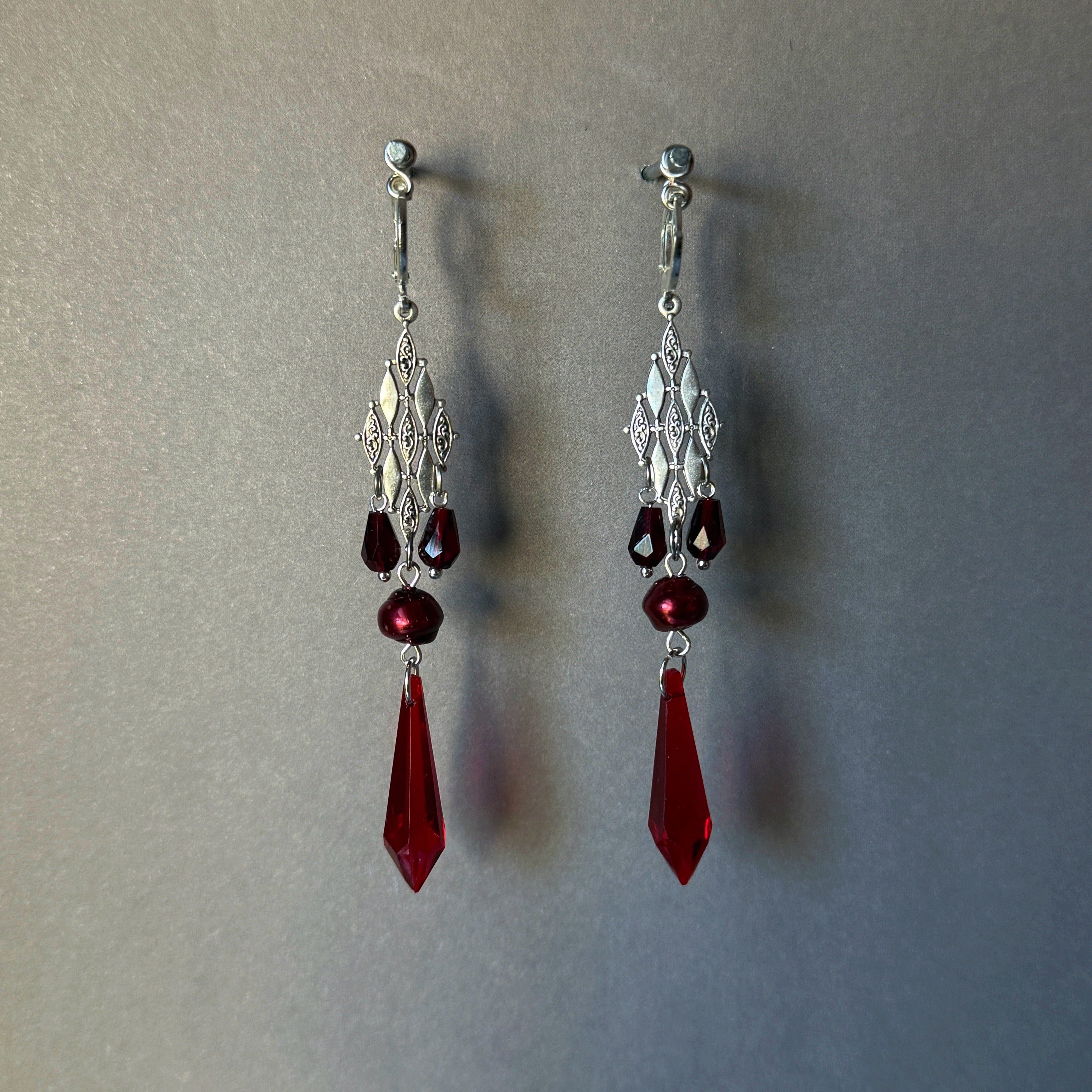 Made with Red Czech beads and vintage style diamond connectors.