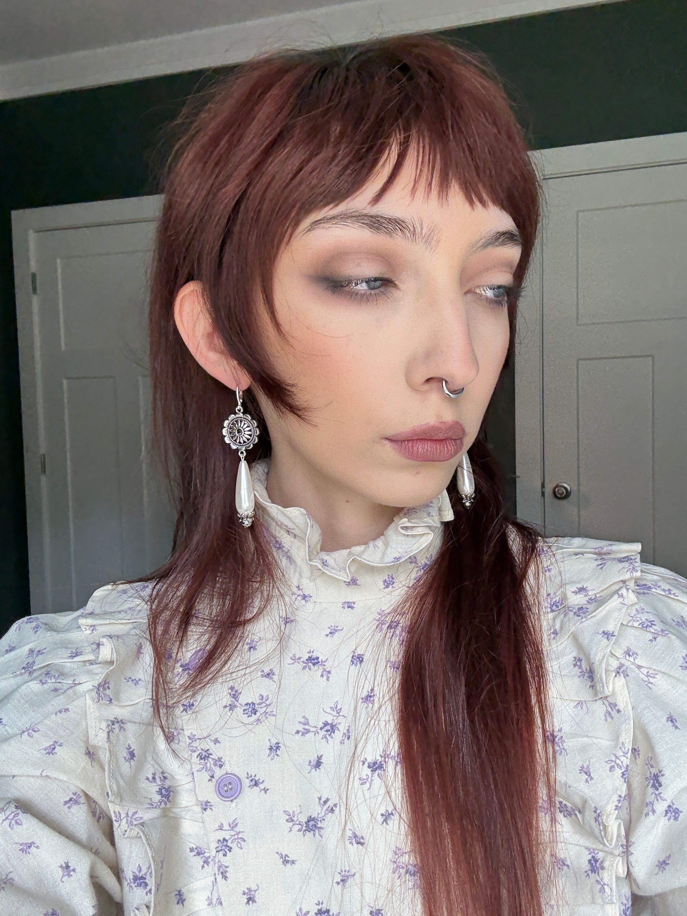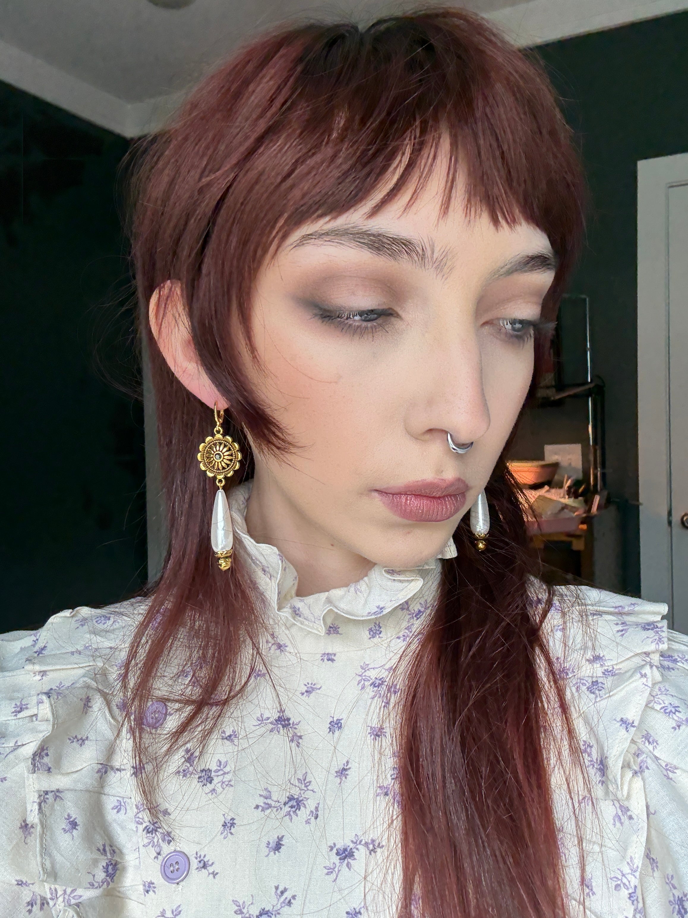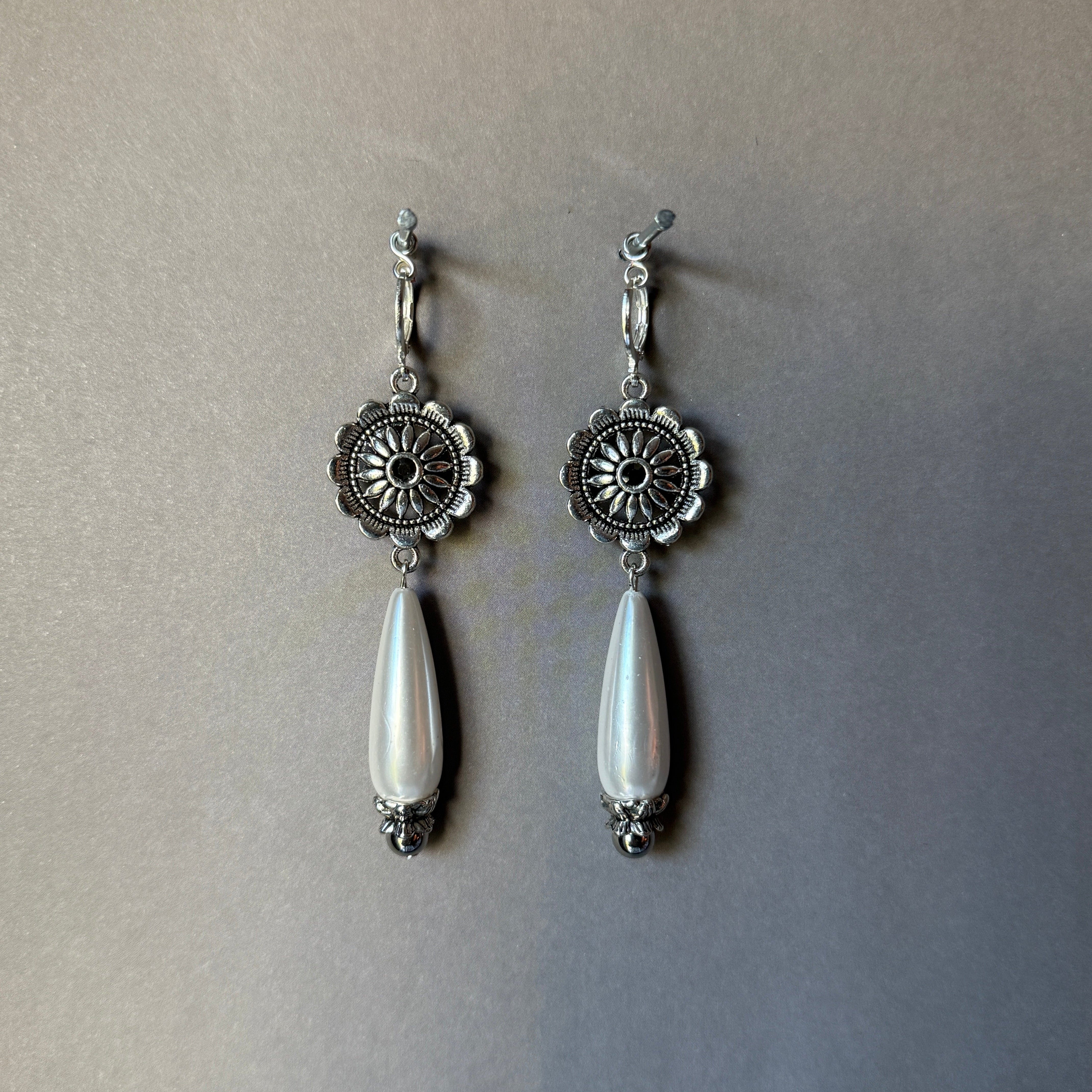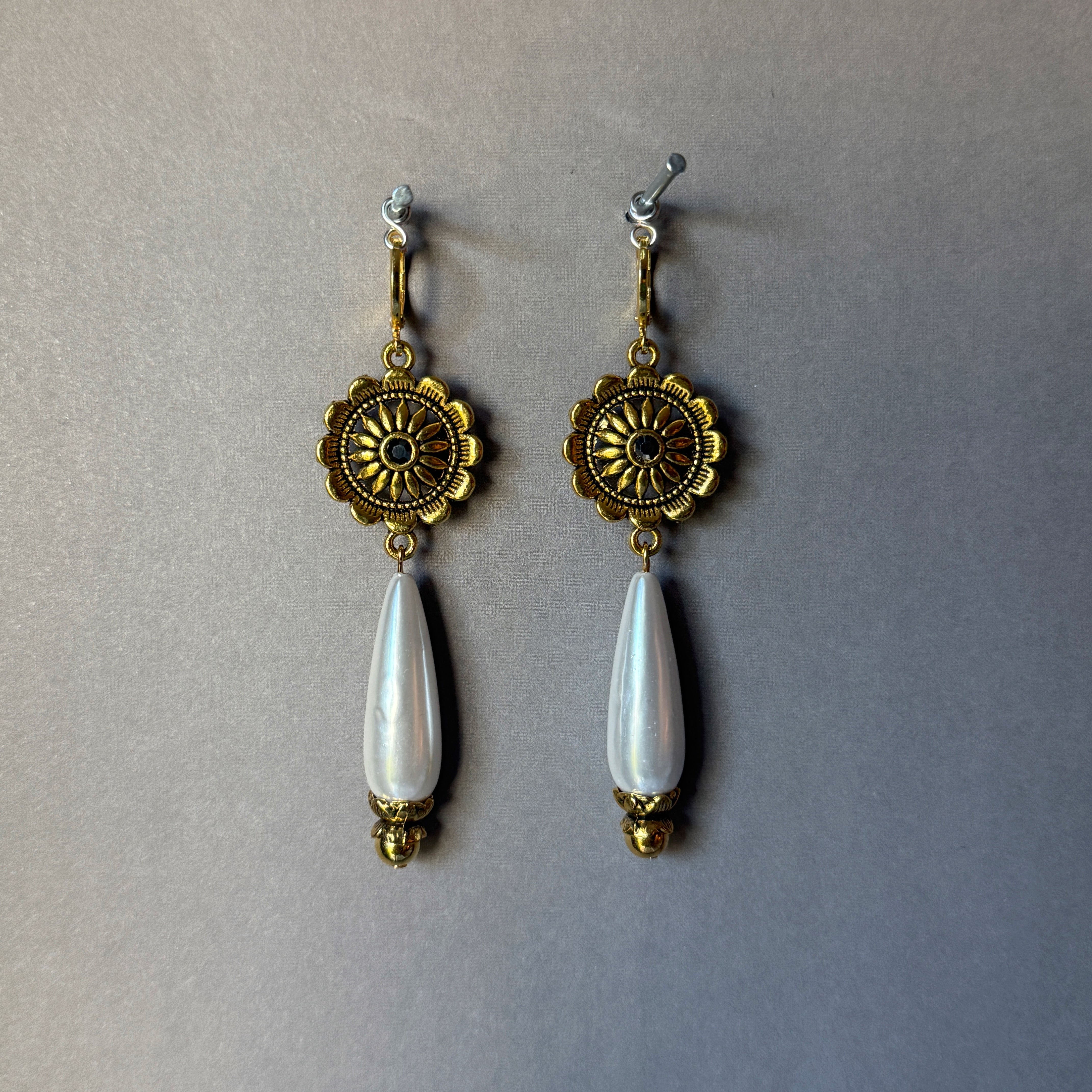 Made with glass pearl beads and vintage style connectors. Inspired by Ellen’s FIRE earrings.